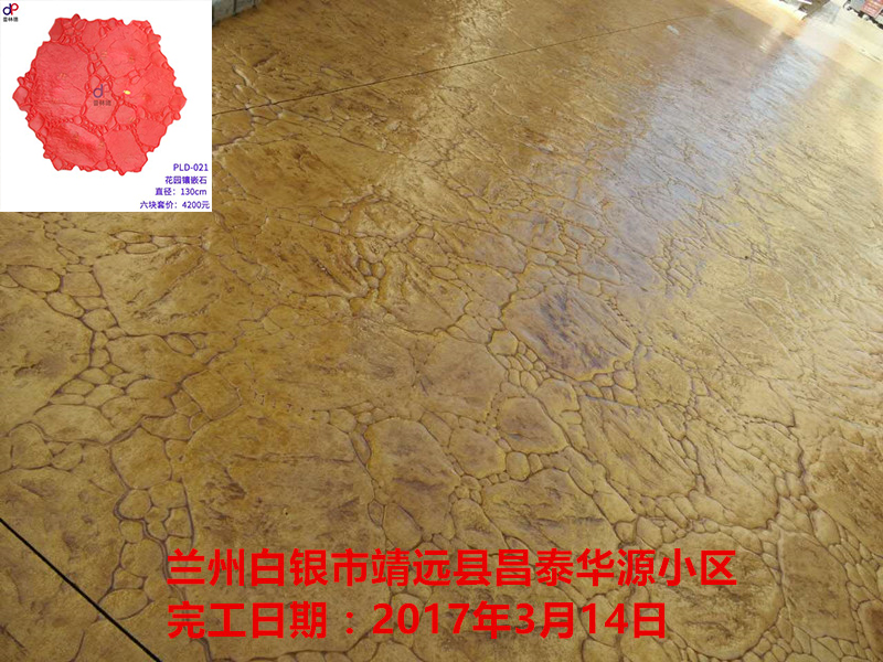 項目名稱:甘肅省蘭州白銀市靖遠縣昌泰華源小區壓模壓花地坪工程 項目地址:甘肅省蘭州白銀市靖遠縣昌泰華源小區 竣工時間:2017年03月14日 項目規模:中型 供應廠家:普林德工廠